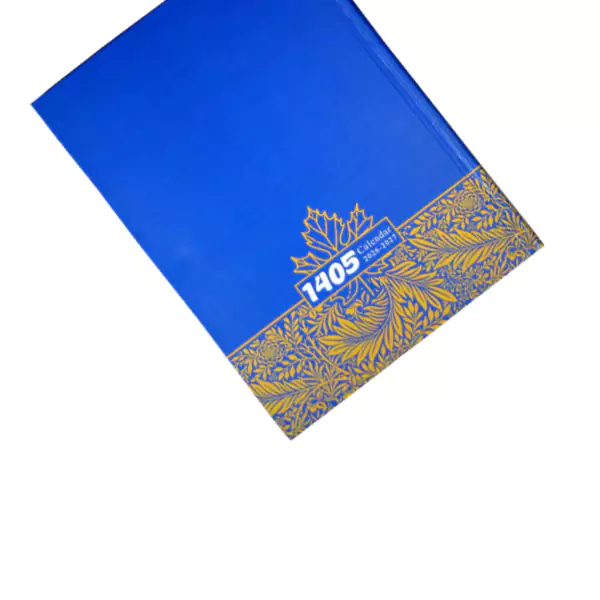 سررسید وزیری C5 با بکگراند سفید ساده و موج طلایی در قسمت پایین جلد، زیبایی چشمنواز و مدرنی را به نمایش میگذارد. این طراحی خاص، توجه هر بینندهای را به خود جلب میکند و حسی لوکس به سررسید میبخشد.